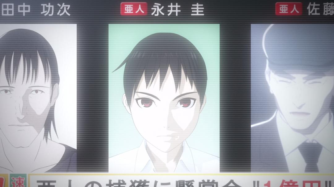 某天,普通高中生永井圭(宫野真守 配音)在放学路上被卡车撞倒,短暂的死亡过后,他悠然回到人间。作为日本第三位亚人,永井被警察、亚人管理委员会乃至赏金猎人等多方势力盯上。与此同时,被亚人管理委员会称为“